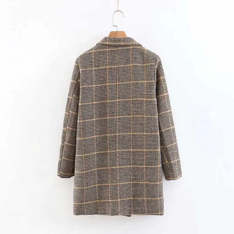 Women's check long sleeve cotton jacket causual vintage coat plaid blazerBuy Now On Aliexpress