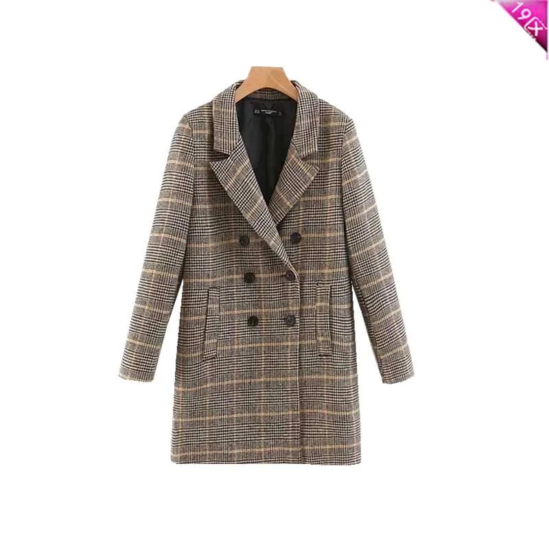 | twill long coat women england style notched houndstooth double breasted pockets long coat winter coat women tops |